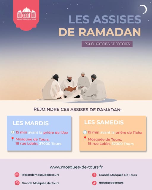 🌙➡️ Les « Assises de rappels » sont suspendus et remplacées par les «Assises du Ramadan», les mardis avant l’Asr et les samedis 15 min avant l’Icha🚨