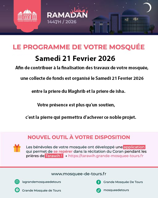 📍 Lieu: Mosquée de Tours, 18 rue Lobin, TOURS 37000